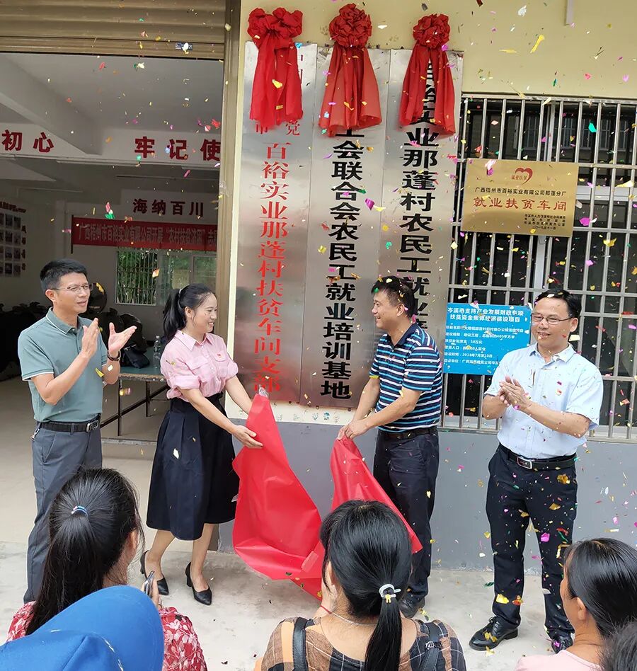 7月2日上午,兩新組織百裕實(shí)業(yè)大隆鎮(zhèn)那蓬村扶貧車(chē)間黨支部舉行揭牌儀式,岑溪市委副書(shū)記韋學(xué)文,岑溪市委組織部副部長(zhǎng)、兩新組織黨工委書(shū)記梁越,百裕實(shí)業(yè)黨支部書(shū)記、總經(jīng)理曾晏來(lái),百裕實(shí)業(yè)那蓬村扶貧車(chē)間支部書(shū)記黃春華,黨員職工代表等共同參加了揭牌儀式。